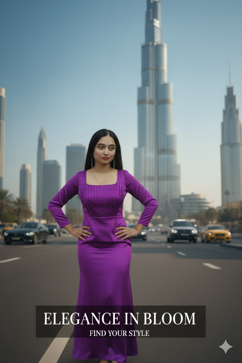 Purple Pleated V Attached Halter Neck Top and Skirt